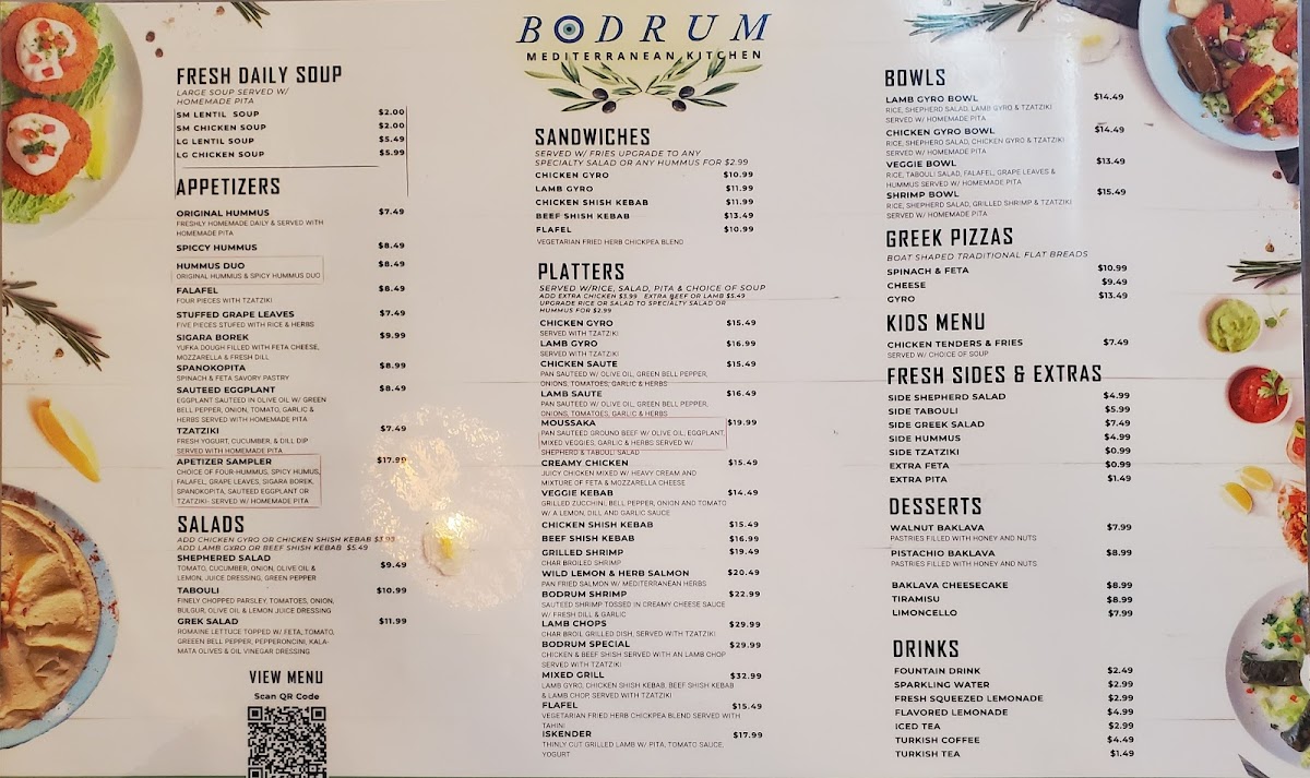 The atmosphere is inviting, and the service is attentive, making every visit a memorable experience. Whether dining in or taking out, Bodrum Mediterranean Kitchen promises a feast that will transport your taste buds straight to the Mediterranean coast.